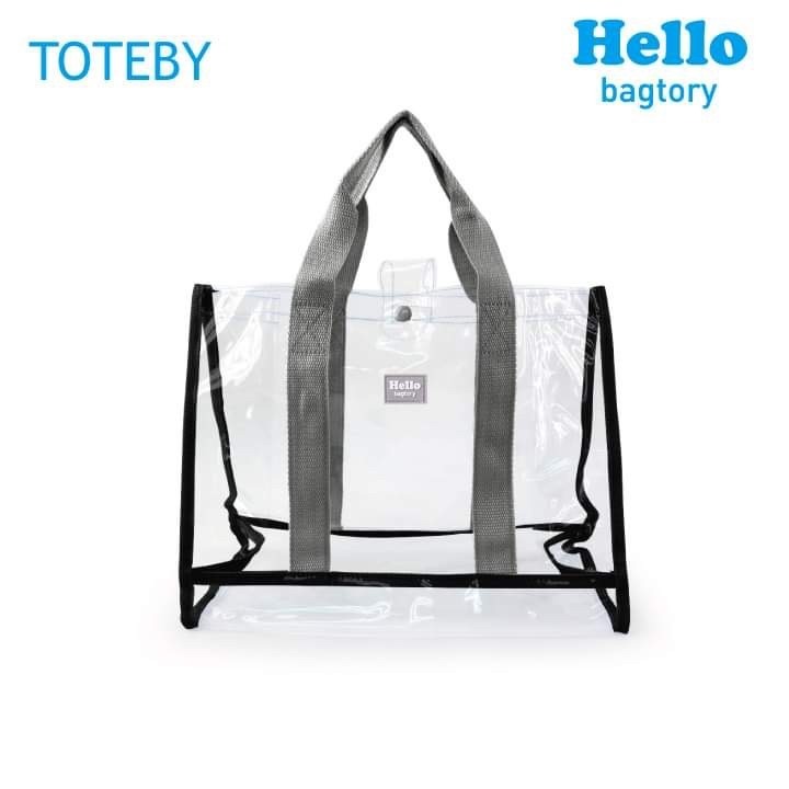 Hello Toteby 透明手挽袋(TT27N)-黑x灰
