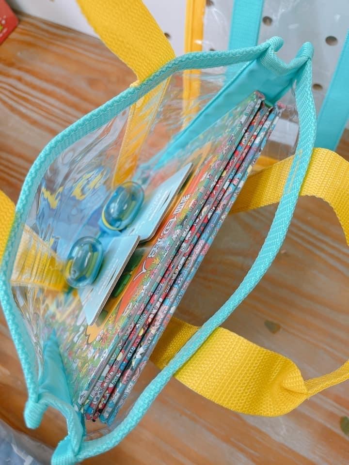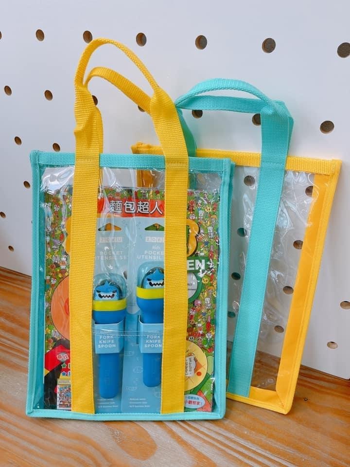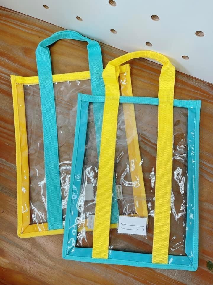 尺寸:27L x 3W x 35H (cm)包裝:2個裝反色方便外出上補習班使用可放A4或F4 書本、作業簿、工作紙、筆盒、水樽等等前方小前袋可放小物品如車票、會員卡、鑰匙、紙巾等等後方名牌格可寫上幼兒園小朋友姓名和班別特厚0.3mm透明PVC製造,加厚尼龍包邊,實用耐用防塵防污,袋面容易清潔