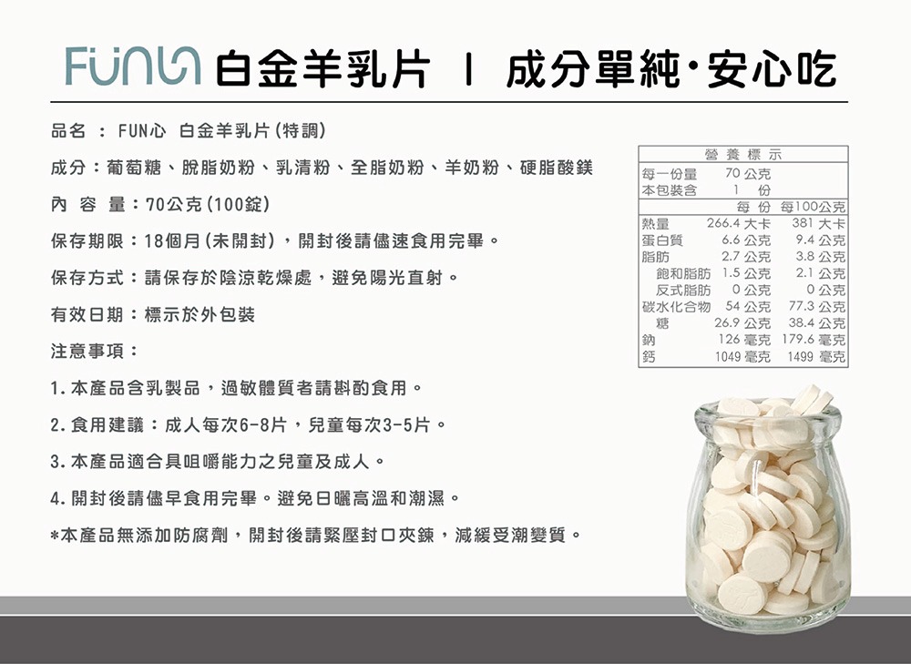 Fun心 羊乳片 100錠70g (單入)
