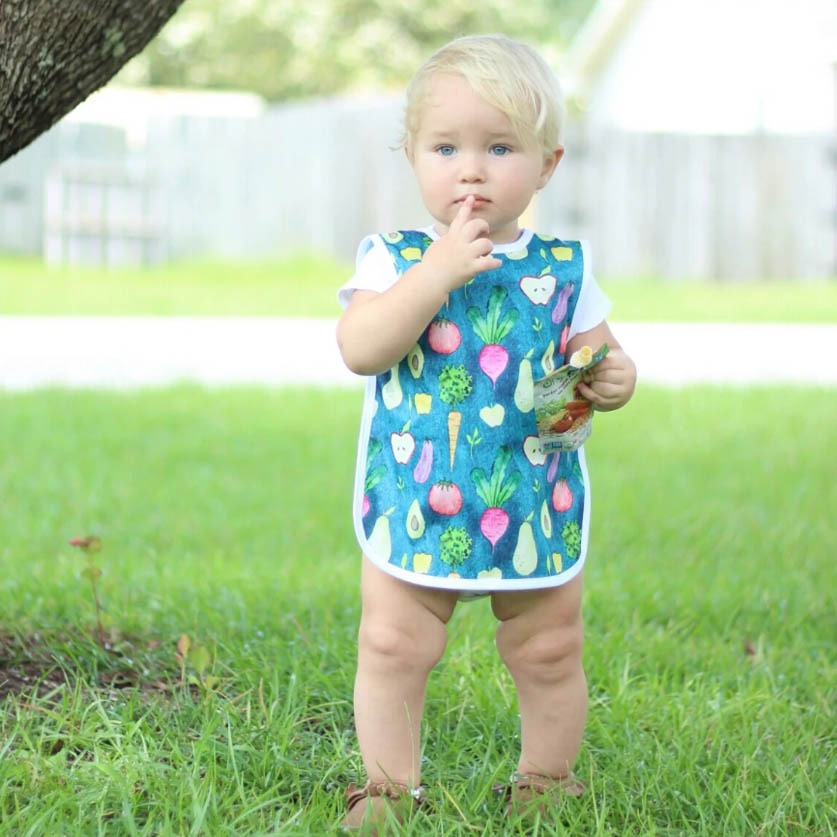 結合圍兜兜與圍裙的功能,直接穿在寶寶身上,沒有圍在脖子上的異物感,柔軟舒適得就像衣著一樣
